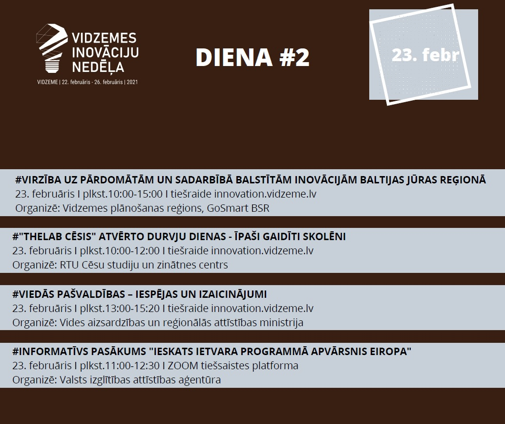 Aicinām iepazīties ar plašo VIN2021 pasākumu programmu, apmeklējot innovation.vidzeme.lv sadaļu PASĀKUMI.
