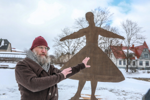 Acīgākie madonieši 8. martā – Starptautiskajā sieviešu dienā droši vien jau pamanīja mākslinieka Aigara Bikšes Madonas kultūras nama pagalmā veikto skulptūras maketēšanu vidē, šajā darbā iesaistot arī deju kolektīva "Kalnagravas" dejotājas, kas iegrieza virpuli tobrīd vēl ar sniegu klātajā teritorijā.