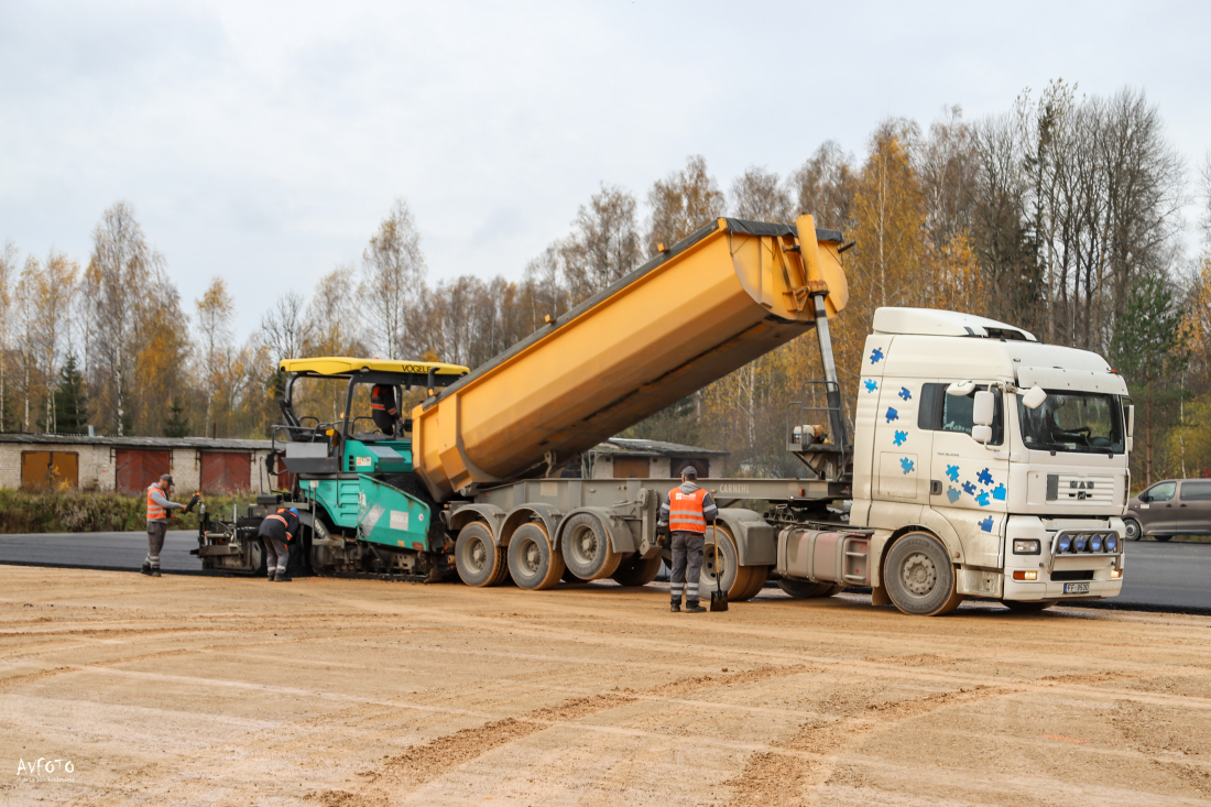 Objektā pabeigti ārējo inženierkomunikāciju izbūves darbi, visā teritorijā izbūvēta laukumu pamata konstrukcija un daļā uzsākti asfaltēšanas darbi. Uzbūvētas abas noliktavas un nojumes ēkas, kurām tiek veikti iekšdarbi.
