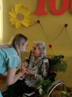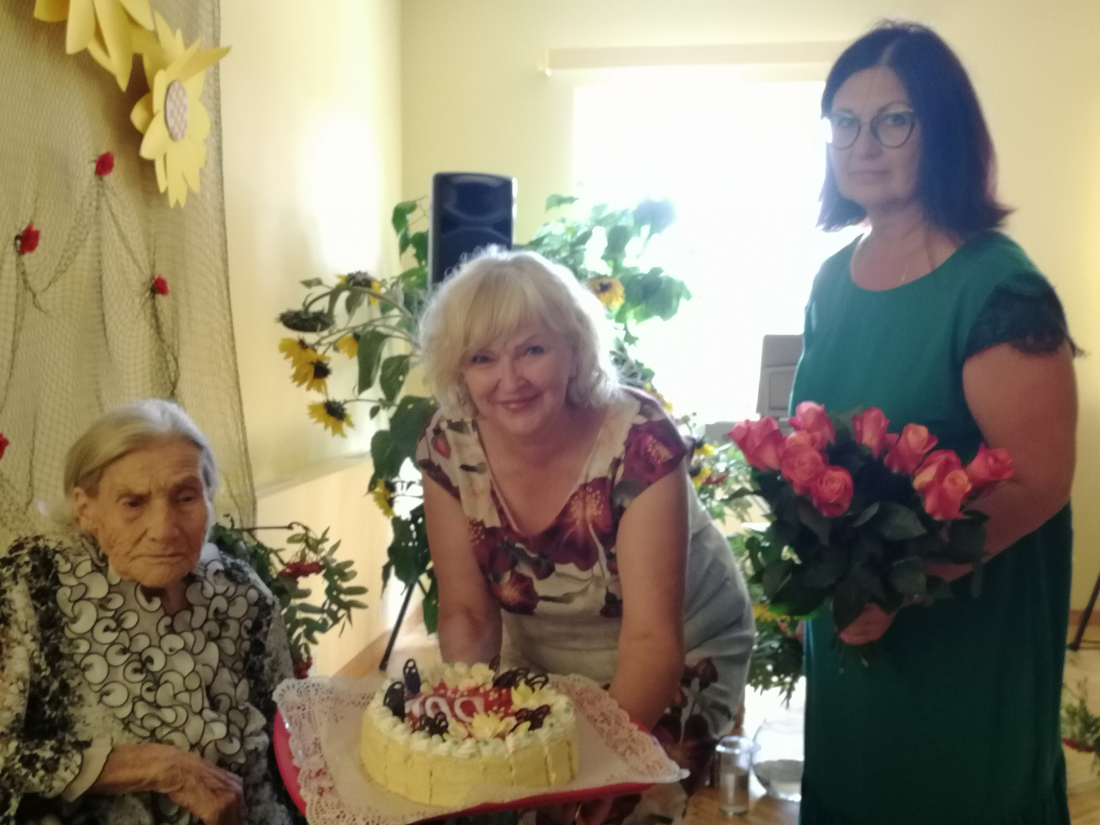 Viņu sveica pansionāta vadītāja Eva Baltiņa un sociālā darbiniece Sarmīte Lazdiņa, darbinieki un pansionāta iemītnieki, Barkavas pagasta pārvaldes vadītājs Aleksandrs Šrubs, kupls radu un draugu pulciņš.