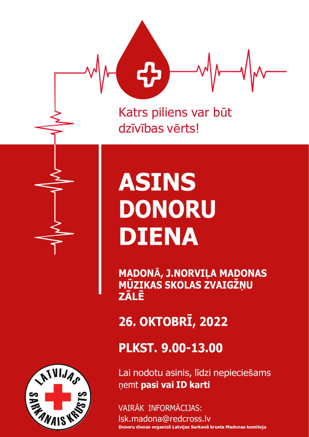 “Šobrīd Latvijas slimnīcās ir ļoti daudzi pacienti, kuri gaida donoru palīdzību. Diemžēl bez asins komponentiem lielāko daļu no viņiem nespēs glābt nedz mūsu gudrie un pieredzējušie mediķi, nedz smalkākās medicīnas iekārtas. Tādēļ ir ļoti svarīgi, ka sabiedrība nav vienaldzīga un turpina ziedot asinis. Labais darbs, ko ikviens vesels cilvēks var paveikt nepilnās desmit minūtēs, sniedz lielu gandarījuma sajūtu ikvienam donoram, jo vienā donācijas reizē katrs no mums palīdz glābt trīs smagi slimu pacientu dzīvības,” akcentē Egita Pole, VADC direktore.