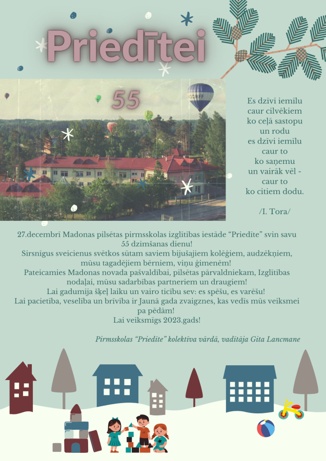 27.decembrī Madonas pilsētas pirmsskolas izglītības iestāde “Priedīte” svin savu 55 dzimšanas dienu.