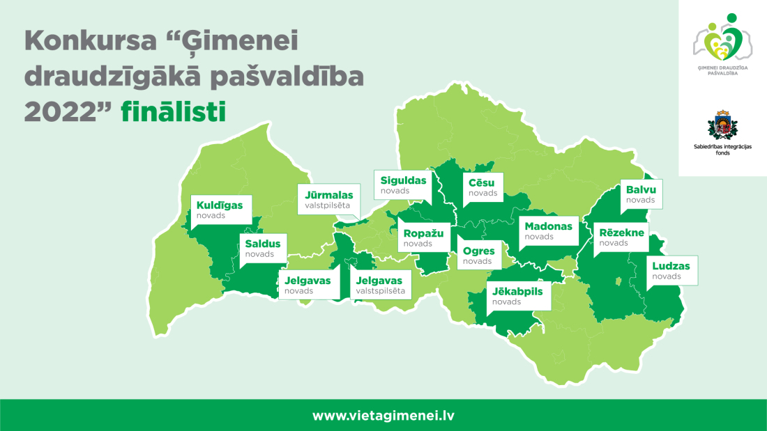 Vērtēšanas komisija decembra izskaņā devās pie konkursa “Ģimenei draudzīgākā pašvaldība 2022” finālistiem, lai klātienē pārliecinātos par pašvaldību draudzīgumu ģimenēm, iepazītos ar pašvaldību sagatavotajām prezentācijām un apmeklētu vienu apskates objektu vai pasākumu. Konkursa noslēguma pasākumā, kas plānots 2023. gada pirmajā pusē, viena no pašvaldībām tiks atzīta par ģimenei draudzīgāko valsts mērogā un saņems naudas balvu 30 000 eiro apmērā. Savukārt katras pašvaldību grupas uzvarētājs – balvu vismaz 20 000 eiro apmērā. Kopējais konkursa naudas balvu fonds, kas tiks sadalīts starp uzvarētājpašvaldībām, būs 150 000 eiro.