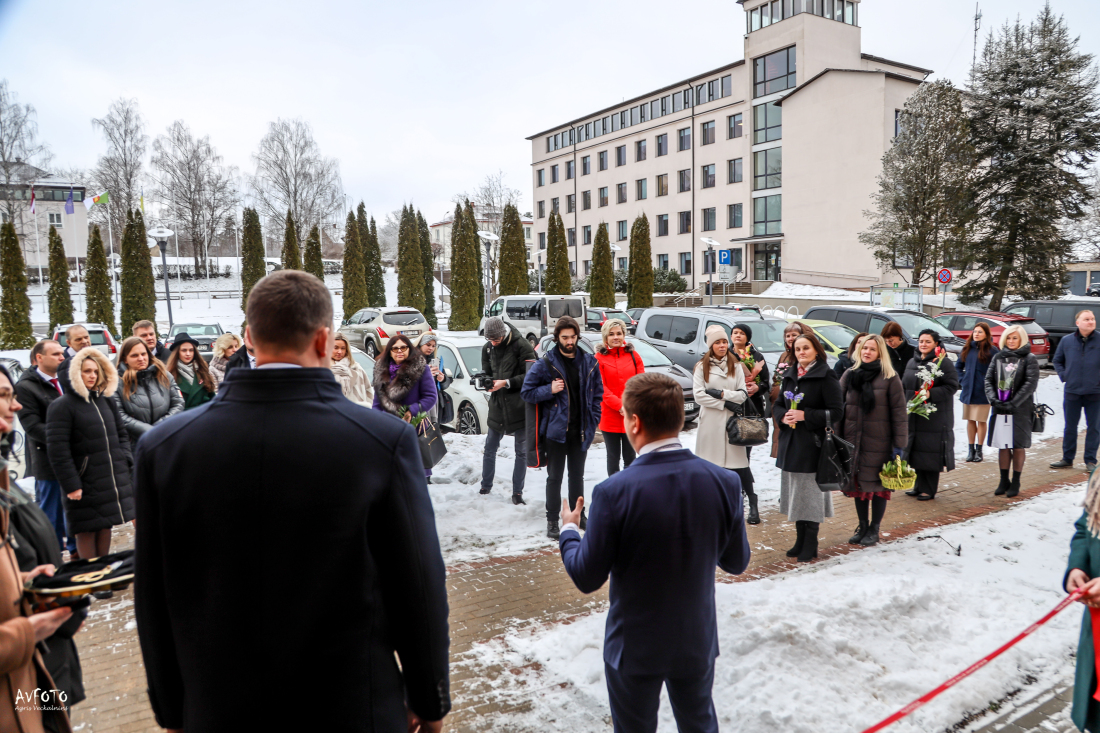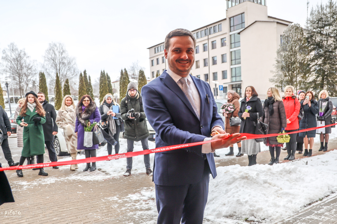 Madonas novada pašvaldības domes priekšsēdētājs AGRIS LUNGEVIČS pārgriežot lentu un atklājot jauno Madonas biznesa attīstības centra ēku, atzina, ka kuplais pasākuma dalībnieku skaits norāda, ka šī vieta ir ļoti gaidīta un nozīmīga Madonas novada uzņēmējiem.