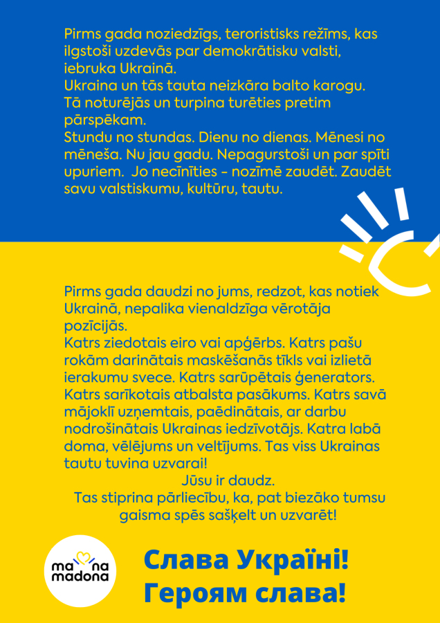 tautai mēs palīdzam sev. Cīņa Ukrainā ir arī mūsu cīņa.