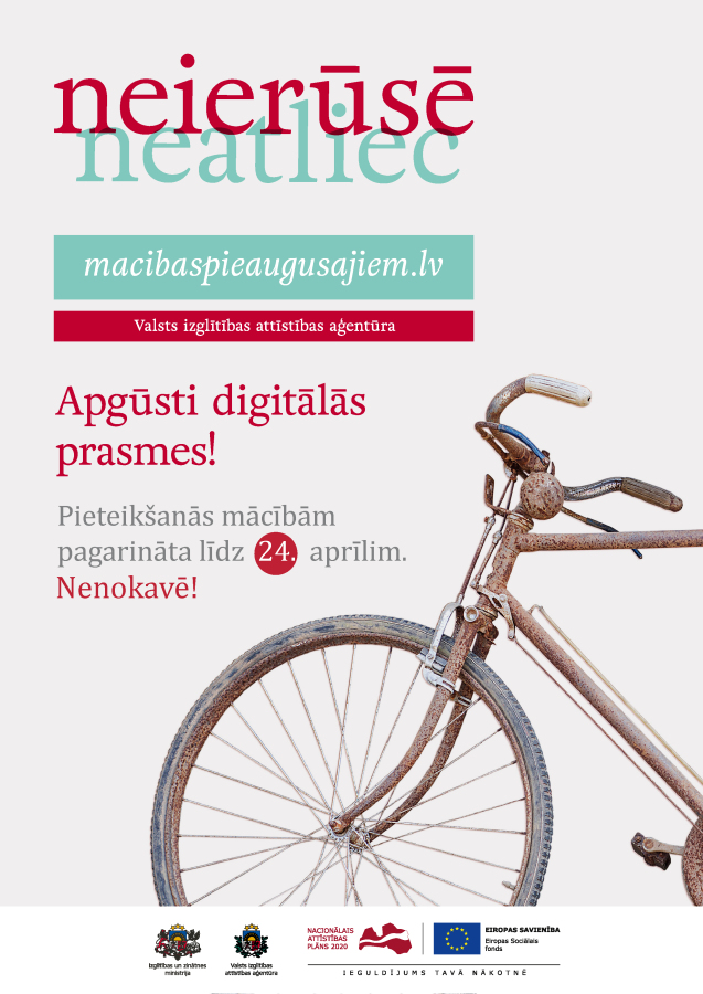 Iespēja apgūt digitālās prasmes Mācību pieaugušajiem projekta 9. kārtas ietvaros notiek Eiropas Savienības prasmju gada (#EuropeanYearOfSkills) ietvaros.