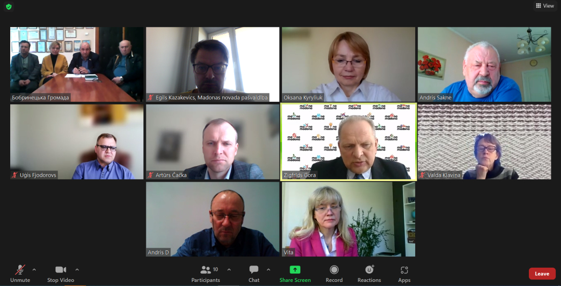 Tiešsaistes sanāksmē Madonas novada pašvaldību pārstāvēja Madonas novada pašvaldības domes priekšsēdētāja vietnieki Zigfrīds Gora un Artūrs Čačka, pašvaldības izpilddirektors Uģis Fjodorovs un domes deputāti: Vita Robalte, Valda Kļaviņa, Andris Dombrovskis un Andris Sakne. Savukārt no Bobrinecas puses piedalījās pilsētas mērs. Leonīds Kravčenko (Леонид Кравченко), pilsētas mēra pirmais vietnieks Valentīns Muzika (Валентин Музыка), pilsētas mēra vietnieki Natālija Javorska (Наталья Яворская) un Jevgeņijs Kuļiks (Евгений Кулик), kā arī domes deputāti Anatolijs Cesarskis (Анатолий Цесарский) un Vladimirs Karpuks (Владимир Карпук). Sanāksmē piedalījās arī Ukrainas Mazo pilsētu asociācijas izpilddirektore Oksana Kiriļjuka (Оксана Кирилюк), kuras aicinājumam veidot sadarbību ar kādu no Ukrainas pašvaldībām, kā vienu no potenciālajiem sadraudzības partneriem piedāvājot tieši Bobrinecas pilsētu, pirms pāris mēnešiem atsaucās domes deputāti.