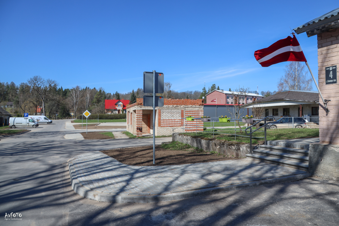 Būvnieks SIA “LV ROADS” darbus pie objekta uzsāka aizvadītā gada septembra vidū; novembrī, pasliktinoties laikapstākļiem, tika paņemts tehnoloģiskais pārtraukums. Atsākoties būvniecības sezonai, būvnieks pabeidza gājēju ietves būvniecību, apzaļumošanu un objekta sakopšanas darbus. Būvniecības izmaksas - 156 tūkstoši eiro (ar PVN).