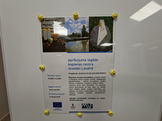 Lai to paveiktu, iegādāti pamatlīdzekļi brīvā laika aktivitātēm un kopienas centra aprīkošanai – mēbeļu komplekti, izstāžu vitrīnas, molberti, interaktīvais ekrāns, dators – ar domu, ka tie ir mobili un pēc iespējas kompakti, tādējādi izmantojami gan kultūras namā, gan brīvā dabā, gan kopienas centrā.