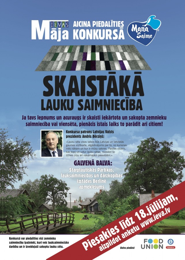 Konkursu kopīgi organizē žurnāls IEVAS Māja un Latvijā vadošā piena pārstrādes uzņēmuma Food Union produktu līnija Mana saime.
