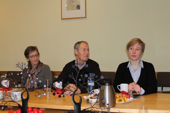 Vācu mākslinieks Stefans Vogts ar kundzi ir ieradušies Madonā, lai atklātu savu koktēlniecības skulptūru izstādi Madonas muzejā. Kopā ar mākslinieku ieradusies arī Vaijes pašvaldības kultūras darba organizatore Tīna Fišere. Tikšanās brīdī piedalījās arī deputāte, Kalnagravu tautas nama direktore Valda Kļaviņa, kā arī muzeja direktore Līvija Zepa un vēsturniece Dace Zvirgzdiņa.