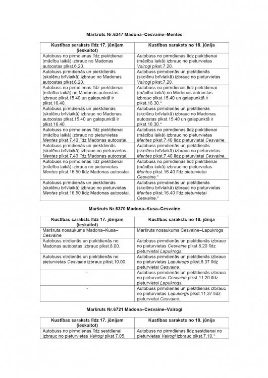 efektivitāti, no 2018. gada 18. jūnija gaidāmas izmaiņas maršrutā