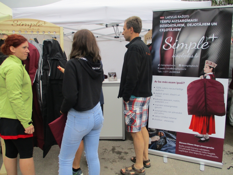 Par pārsteigumu ikvienam - Daugavas stadiona tirdziņā iespējams iegādāties vai pasūtīt arī tērpu aizsargmaisus dejotājiem, dziedātājiem, ceļotājiem. Īpašs lepmuns par to, ka šos maisus piedāvā