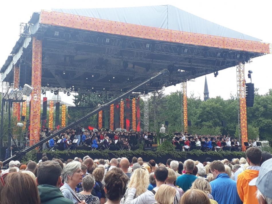 Atgādinājumam - muzicēs Latvijas novadu apvienotie pūtēju orķestri, bet noslēguma daļā – dižorķestris ar 500 pūtēju orķestru dalībniekiem - tostarp -
