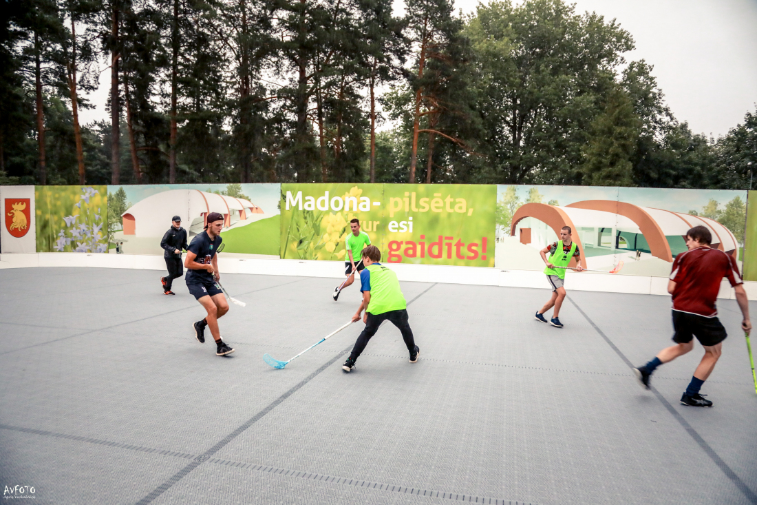 “Tas ļautu bez ierobežojumiem izmantot uzstādīto āra mākslīgo segumu florbola treniņiem vasaras periodā un vasaras sacensībām Madonas novada un Madonas pilsētas bērniem, jauniešiem un pieaugušajiem, kā arī Latvijas čempionāta vasaras līgā, kāda no posmiem organizēšanu Madonas pilsētā. Laukuma parametri - 28x15 metri standarta laukuma 40x20 metru vietā - pieskaņoti florbola treniņu vajadzībām. Šī laukuma priekšrocība ir tā, ka florbolisti gan grupā, gan individuāli laukumu var apmeklēt sev vēlamā laikā. Madonas pilsētas sporta centrā treniņi var noritēt tikai pēc grafika. Estrādes teritorijas reljefs ir lieliski piemērota arī fiziskās sagatavotības vingrinājumiem. Laukumu var izmantoto ne tikai FK “Madona” florbolisti – laipni aicināts ikviens šī sporta veida entuziasts, taču lai izvairītos no nepatīkamiem pārsteigumiem, laukuma teritorijā tiek veikta videonovērošana,” stāsta Māris Gailums.