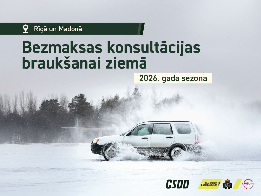 Lai veicinātu drošāku satiksmi un pilnveidotu autovadītāju prasmes, CSDD arī šajā ziemā piedāvā autovadītājiem bezmaksas ziemas braukšanas konsultācijas. Šajā nedēļā ziemas braukšanas konsultācijas noslēgsies ar nodarbībām Rīgā, Biķernieku trasē un Madonā.