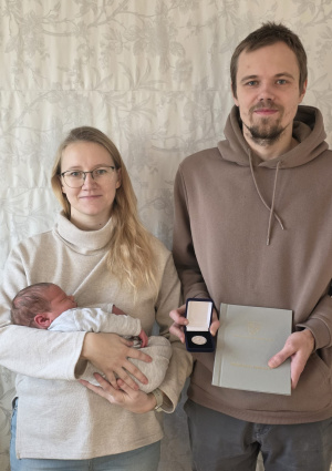 Līdz 20. janvārim reģistrēti četri šajā gadā un Madonas novadā dzimuši mazulīši. Viena no pirmajām monētām “Dzimis Madonas simtgadē” jau nonākusi pie sava īpašnieka - Emīla Vaniņa (dz.13.01.2026). Viņa vecāki - Lauris Vaniņš un Līga Gailīte – ir no Cesvaines pagasta, un mājās Emīlu nepacietīgi gaida arī četrus gadus vecs brālītis Markus.
