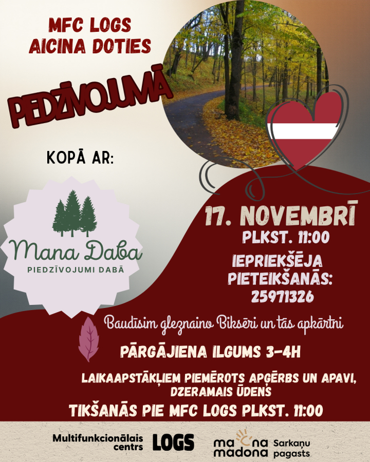 Sagaidāmas 3–4 stundas svaigā gaisā, skaistas ainavas un lieliska kompānija — ģimene, draugi vai jauni domubiedri!