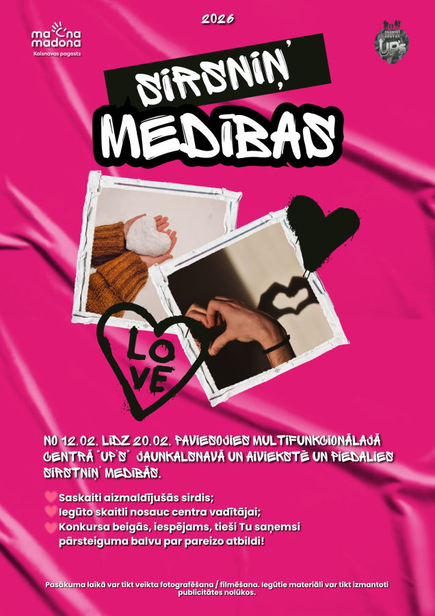 Iejūties siržu meklētāja lomā un apciemo Multifunkcionālo centru “UP’s”, lai piedalītos konkursā! No 13.02. līdz 20.02. Kalsnavas pagasta Multifunkcionālajā centrā “UP’s” Jaunkalsnavā un Aiviekstē norisināsies aizraujošas sirsniņ’ medības!