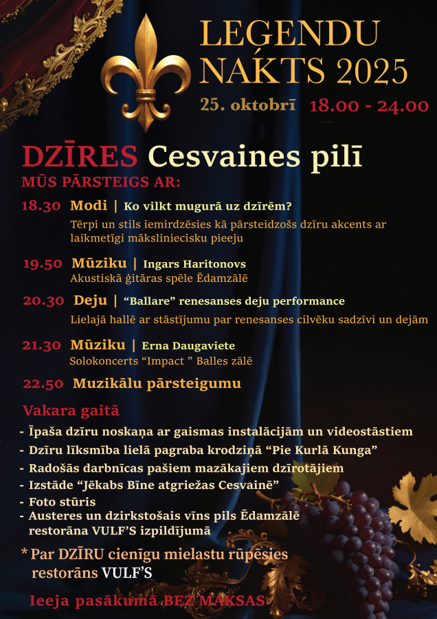 Aicinām kļūt par daļu no neaizmirstamas “Leģendu nakts 2025” Cesvaines pilī! Jautājumu gadījumā iespējams vērsties pie Cesvaines pils komandas, rakstot e-pastu: pils@cesvaine.lv.