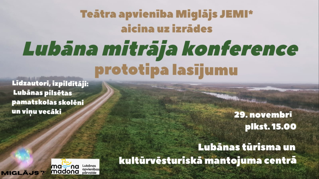 Darbs pie šādas tēmas pieprasa meklējumus, rodot atbilstošāko veidu, kā iesaistīt ap Lubāna mitrāju dzīvojošās kopienas un kā sadzirdēt pašu dabu. Otrā darba posma rezultāts būs izrādes prototipa lasījumi, kas Bērzpilī izskanēs 28. novembrī plkst. 12.40 Bērzpils pamatskolā, bet Lubānā būs dzirdami 29. novembrī plkst. 15.00 Lubānas tūrisma un kultūrvēsturiskā mantojuma centrā. Visi interesenti ir gaidīti, lai redzētu, dzirdētu un uzdotu jautājumus par šo procesu, palīdzot darbam turpināties, lai nākamajā gadā taptu gala izrādes scenārijs un pats iestudējums!