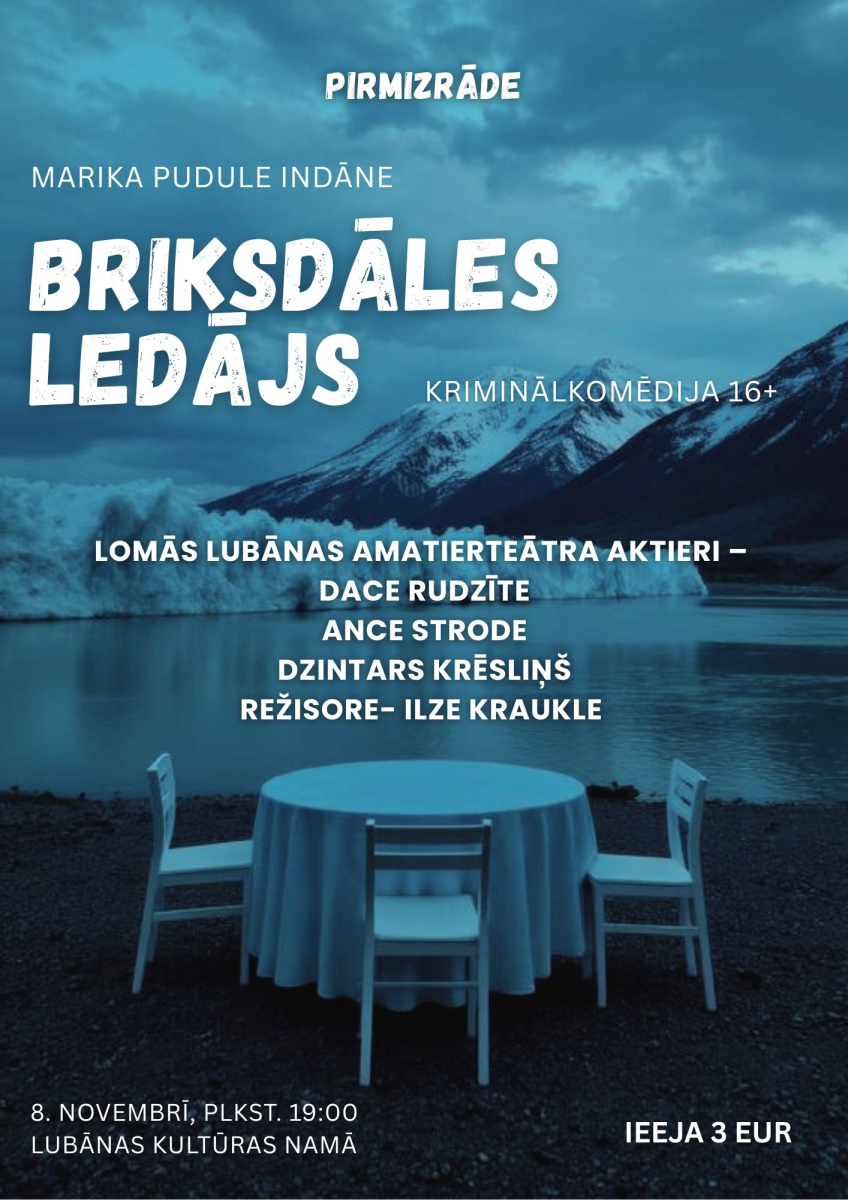 Lubānas amatierteātris aicina uz pirmizrādi Marikas Pudules – Indānes kriminālkomēdiju “Briksdāles ledājs”.
