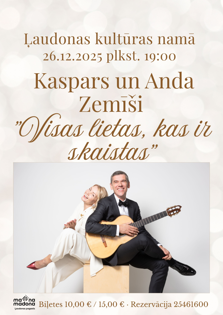 2025. gada 26. decembrī plkst. 19.00 Ļaudonas kultūras namā Ziemassvētku koncertprogramma “Visas lietas, kas ir skaistas”, kurā uzstāsies ģitārists Kaspars Zemītis un viņa dzīvesbiedre, dziedātāja Anda Zemīte.