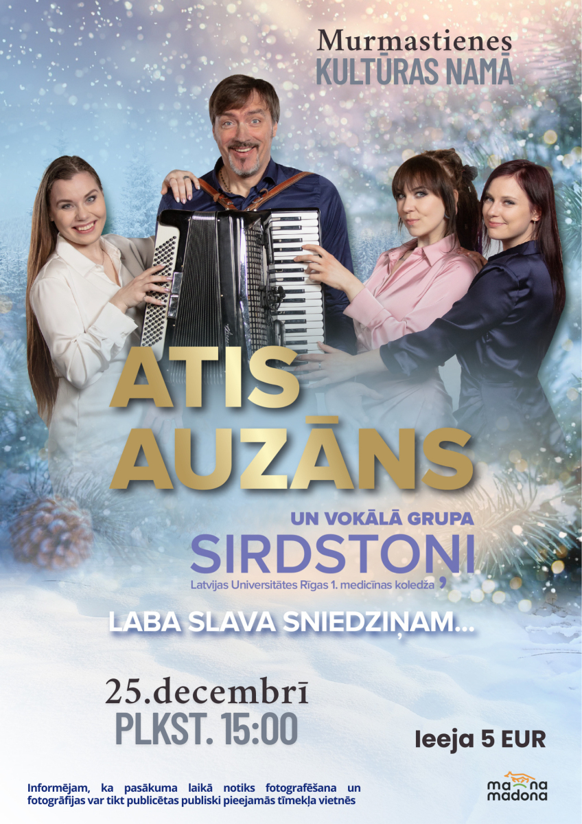 Multiinstrumentālists, komponists un aranžētājs Atis Auzāns savīs melodijas kā smalkus sniega rakstus, bet vokālā grupa “Sirdstoņi” ar izsmalcinātību un kristāldzidru daudzbalsību piešķirs tām pacilājošu skanējumu. Tā būs mūzika, kas iemirdzas kā pirmais sniegs - klusi, tīri un sirsnīgi.