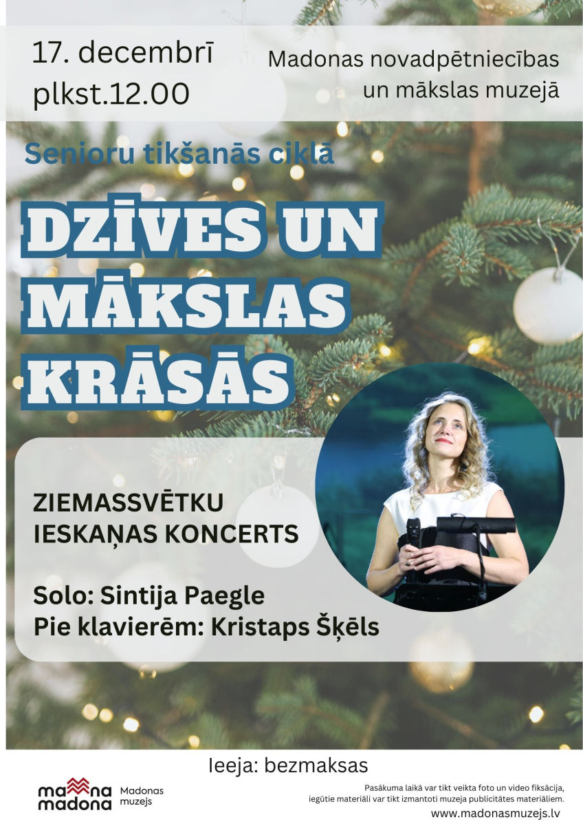 Madonas muzejs aicina uz senioru tikšanos ciklā "Dzīves un mākslas krāsās" pirmssvētku noskaņā, kur ar muzikāliem priekšnesumiem priecēs Sintija Paegle un Kristaps Šķēls.