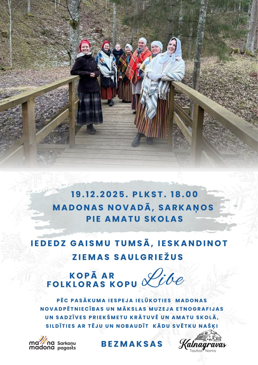Aicinām ieskandināt Ziemassvētkus un iepazīt latviskās tradīcijas kopā ar folkloras kopu “Libe”.