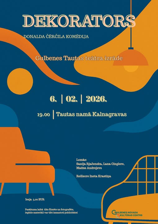 6. februārī plkst. 19.00 tautas namā "Kalnagravas" skatītāji aicināti uz Gulbenes tautas teātra izrādi – Donalda Čērčila komēdiju “Dekorators”.