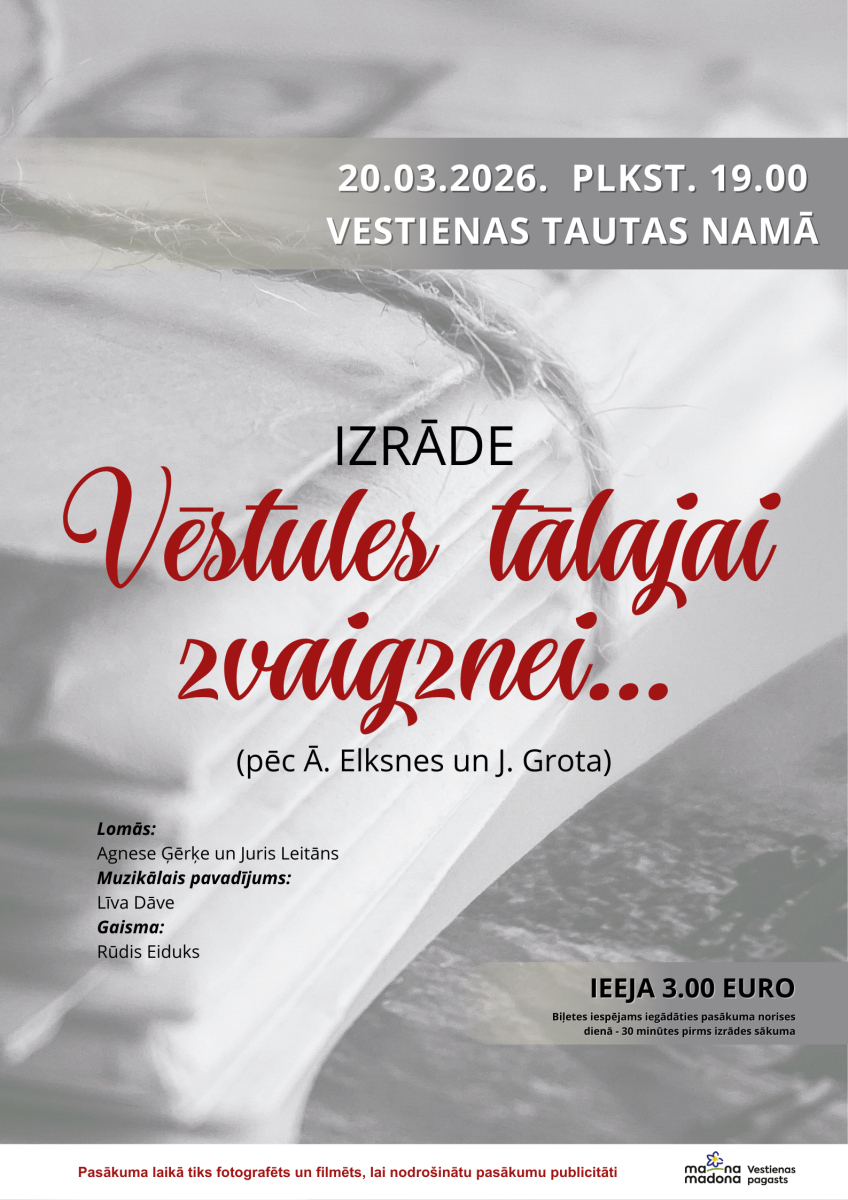 20. martā plkst. 19.00 Vestienas tautas namā skatītāji aicināti uz izrādi “Vēstules tālajā zvaigznē…”, kas veltīta mūžīgajām vērtībām – mīlestībai un uzticībai.