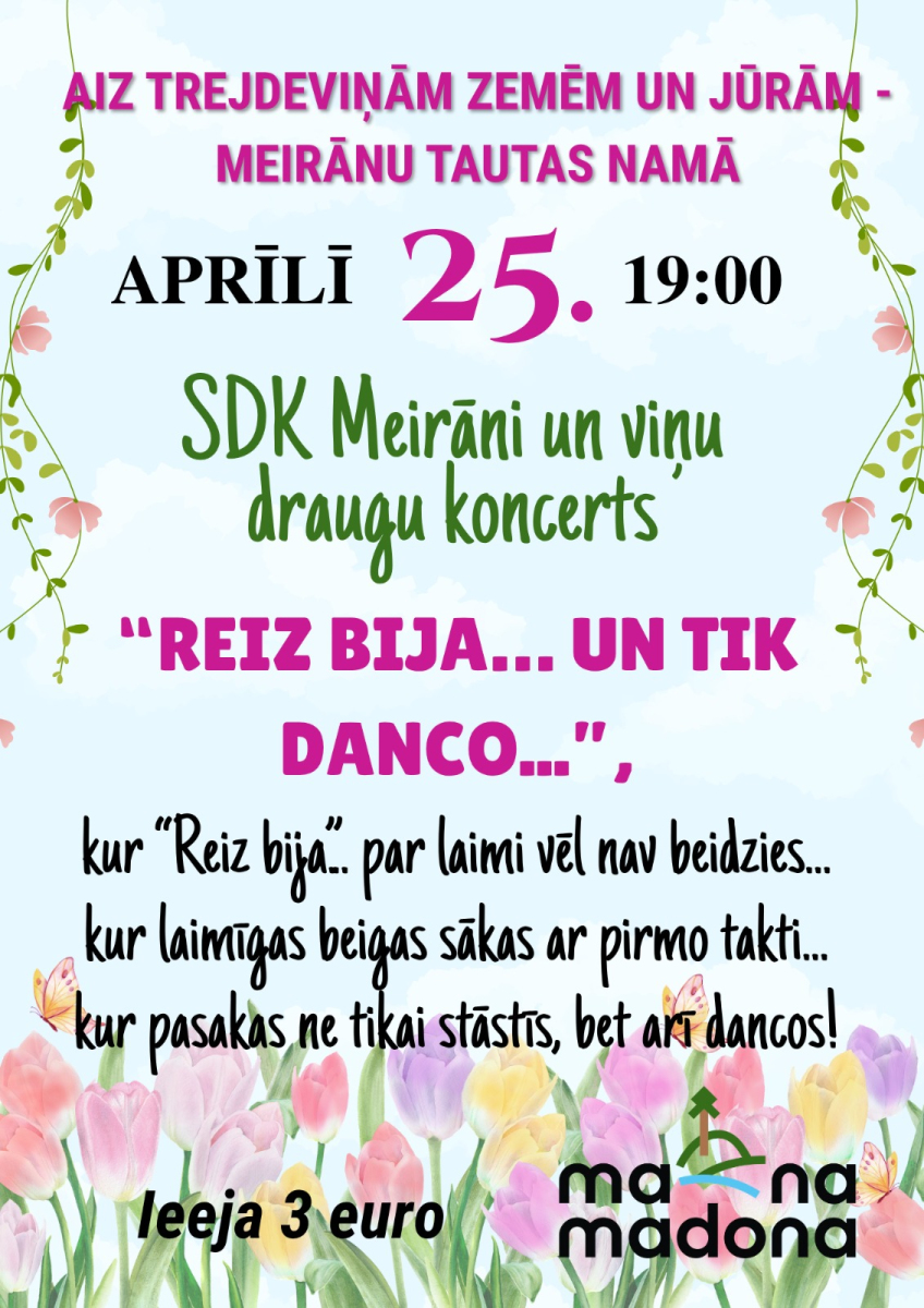 25. aprīlī plkst.19.00 Meirānu tautas namā SDK "Meirāni" aicina uz koncertu "Reiz bija ... un tik danco".