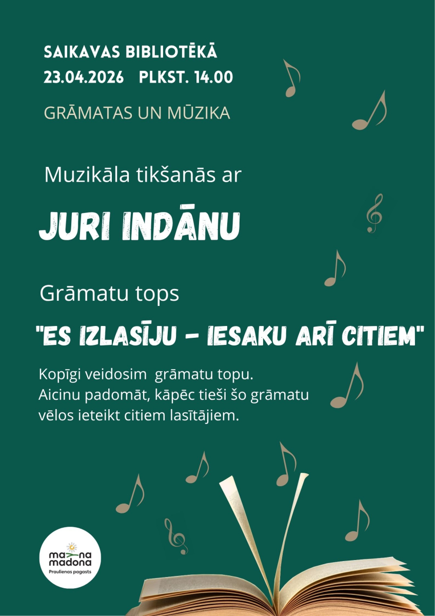 Bibliotēku nedēļas pasākums Saikavas bibliotēkā - Grāmatu topa veidošana un muzikāla tikšanās ar Juri Indānu.