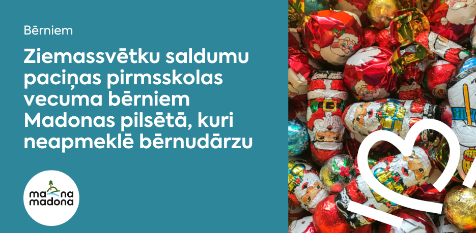 Madonas novada Sociālais dienests aicina izņemt Ziemassvētku saldumu paciņas, kuras domātas Madonas pilsētā deklarētajiem pirmsskolas vecuma bērniem, kuri neapmeklē un nav bijuši pieteikti pirmsskolas izglītības iestādēs.