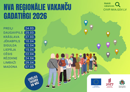 2026. gada martā, aprīlī un maijā Nodarbinātības valsts aģentūra (NVA) rīkos reģionālos vakanču gadatirgus, tostarp Madonā, lai reģionu darba devēji un darba meklētāji varētu satikties vienuviet un klātienē pārrunāt ar darba attiecību uzsākšanu saistītus jautājumus. Tā būs lieliska iespēja dažādu nozaru darba devējiem atrast darbiniekus, bet darba meklētājiem – viņiem piemērotas sezonas vai pastāvīgas darbavietas.
