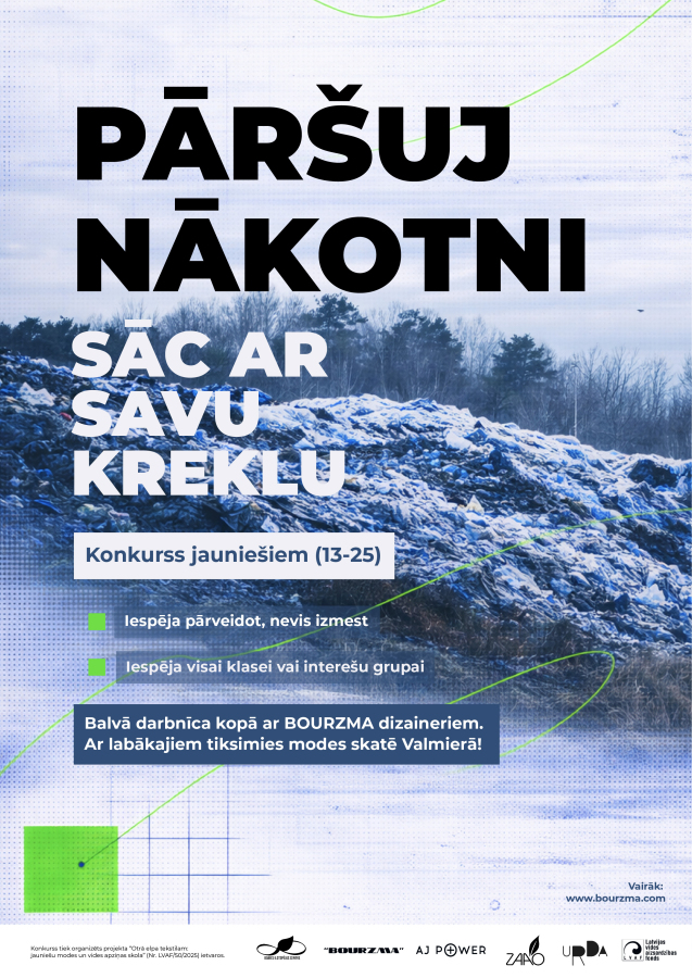 Konkurss tiek īstenots sadarbībā ar ilgtspējas modes platformu “BOURZMA”, kuras dizaineri strādās kopā ar jauniešiem astoņās praktiskajās darbnīcās, palīdzot idejas pārvērst unikālos un valkājamos dizainos.