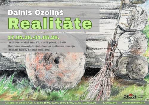 17. aprīlis 15:00 - 31. maijs 16:00 Madonas novadpētniecības un mākslas muzejā no 2026. gada 17. aprīļa skatāma mūsu novadnieka, mākslinieka Daiņa Ozoliņa izstāde “Realitāte”, kurā skatītāji aicināti iepazīt viņa radošo skatījumu uz apkārtējo vidi.