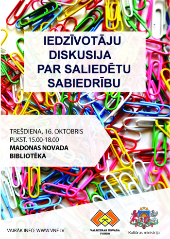 16.oktobrī Madonā tika aizsāktas Valmieras novada fonda sadarbībā ar Latvijas Republikas Kultūras ministriju organizētās diskusijas par saliedētu sabiedrību.