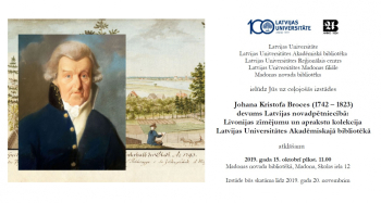 Esiet aicināti uz Latvijas Universitātes Akadēmiskās bibliotēkas ceļojošās izstādes "Johana Kristofa Broces (1742 – 1823) devums Latvijas novadpētniecībā: Livonijas zīmējumu un aprakstu kolekcija" atklāšanu!