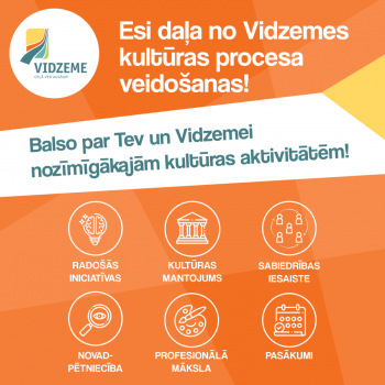 Līdz 13. janvārim vidzemnieki var nobalsot par svarīgākajiem kultūras virzieniem reģionā, kurus vajadzētu finansēt 2020. gadā. Sabiedrības balsojumā paustais viedoklis tiks ņemts vērā, izvirzot Vidzemes kultūras programmas 2020 prioritātes, kā arī organizējot citas kultūras jomas aktivitātes Vidzemē nākošajā gadā.