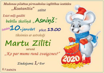 Madonas pilsētas pirmsskolas izglītības iestādē ,,Kastanītis” , Blaumaņa 19 biedrība ,,Kastanītis – bērniem” bebīšu skoliņa ,,Asniņš” projekta “Veselības veicināšanas un slimību profilakses pasākumu īstenošana Madonas novada iedzīvotājiem” ietvaros piedāvā 6 lekciju ciklus topošajām māmiņām un jaunajiem vecākiem.