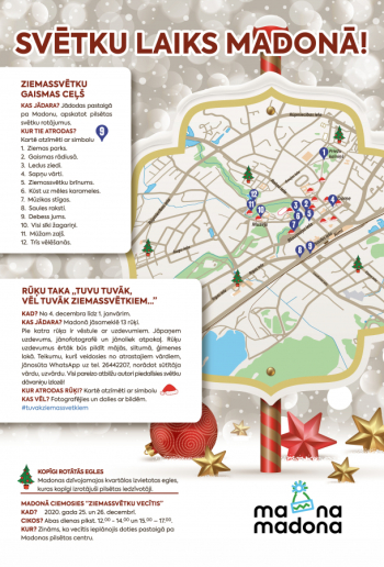 Savādāks nekā citkārt, Ziemassvētku laiks ir atnācis! Šajā satrauktajā svētku laikā ir viegli nomaldīties, tādēļ novēlam, lai izdodas atrast laiku sajust patieso svētku nozīmi. Svētku noskaņu radīs arī Madonas novadā rotātās ēkas, to pagalmi, kā arī daudzās ārtelpu aktivitātes, kuras apmeklēt, ievērojot valstī noteiktos ierobežojumus, aicinām ikvienu novada iedzīvotāju.