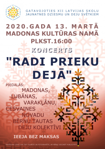 XII Latvijas Skolu jaunatnes dziesmu un deju svētkiem gatavoties uzsākuši arī deju kolektīvi. To,cik daudz jau paveikts, varēs novērtēt 13. martā gaidāmajā koncertā, kad vienkopus pulcēsies kolektīvi no Madonas, Varakļānu, Lubānas un Cesvaines novadiem.