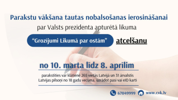 Centrālā vēlēšanu komisija ir izsludinājusi parakstu vākšanu tautas nobalsošanas ierosināšanai par Valsts prezidenta apturētā likuma “Grozījumi Likumā par ostām” atcelšanu.