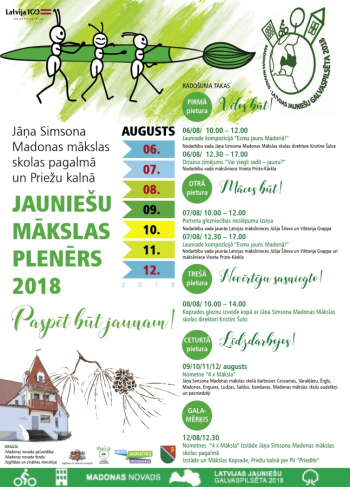No 6. augusta līdz 8. augustam Madonas mākslas skolas atbalsta biedrība aicina Madonas pilsētas un novada jauniešus iesaistīties Madonas novada izglītības programmas 2018 atbalstītajā aktivitātē “Jauniešu glezniecības plenērs Madonā”.