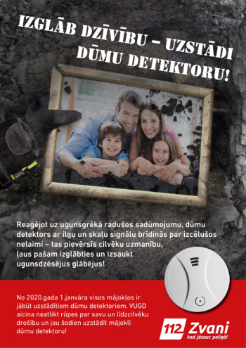 Nākamā gada 1.janvārī stāsies spēkā nozīmīgas Ugunsdrošības noteikumu prasības – visos mājokļos (gan privātmājās, gan dzīvokļos) ir jābūt uzstādītiem autonomiem ugunsgrēka detektoriem, kas reaģē uz dūmiem, bet privātmājas papildus jānodrošina ar ugunsdzēsības aparātu.