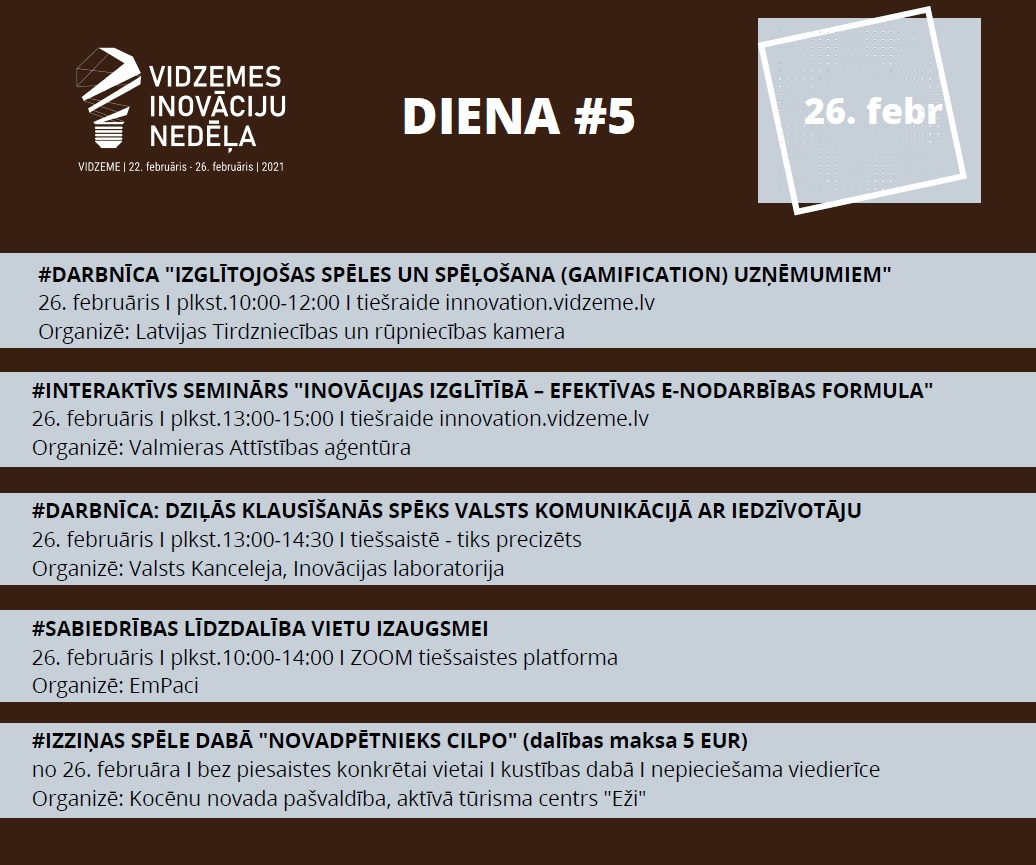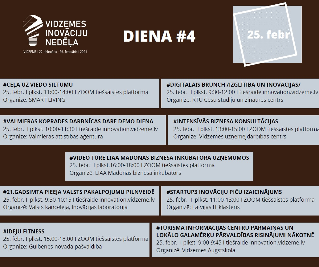 Aicinām iepazīties ar plašo VIN2021 pasākumu programmu, apmeklējot innovation.vidzeme.lv sadaļu PASĀKUMI.