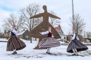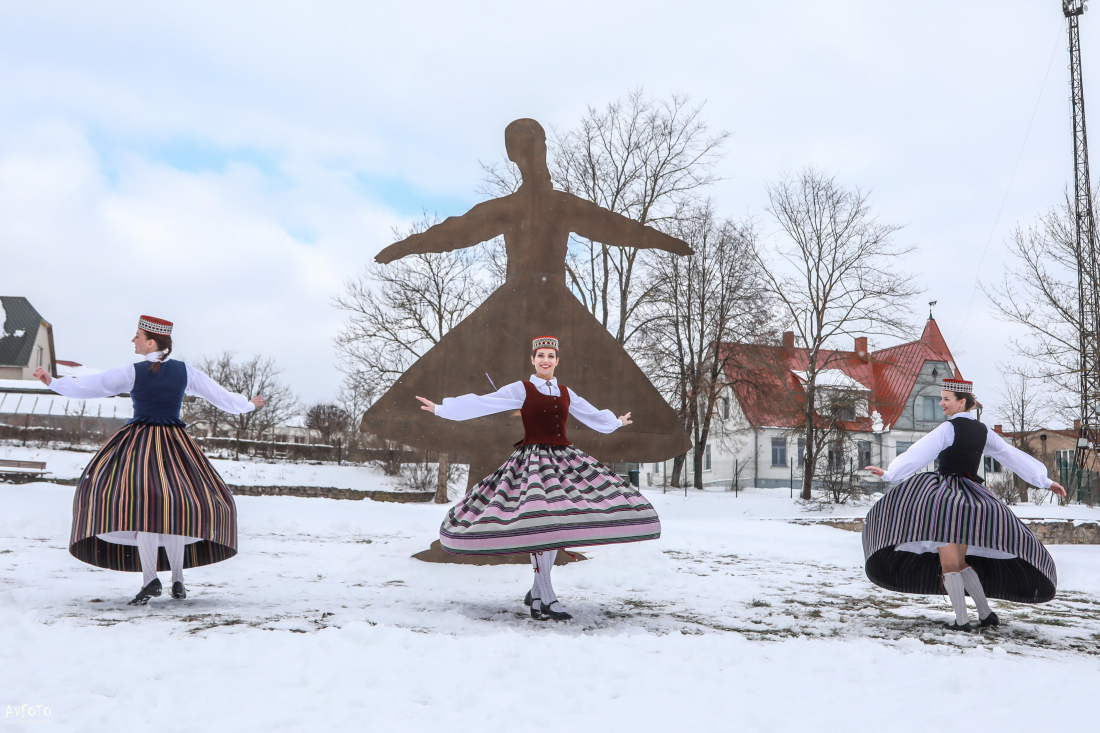 Acīgākie madonieši 8. martā – Starptautiskajā sieviešu dienā droši vien jau pamanīja mākslinieka Aigara Bikšes Madonas kultūras nama pagalmā veikto skulptūras maketēšanu vidē, šajā darbā iesaistot arī deju kolektīva "Kalnagravas" dejotājas, kas iegrieza virpuli tobrīd vēl ar sniegu klātajā teritorijā.