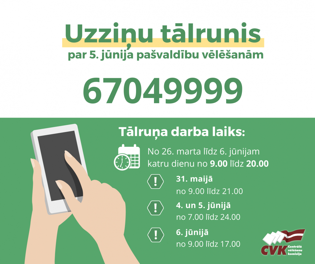 Zvanot uz uzziņu tālruni, vēlētāji varēs noskaidrot savu vēlēšanu apgabalu, vēlēšanu iecirkņu adreses un darba laikus, uzzināt, kā pieteikt vēlēšanu apgabala maiņu, ja citā vēlēšanu apgabalā pieder nekustamais īpašums. Tāpat varēs uzzināt par pieteikšanos balsot pa pastu no ārzemēm, balsošanas kārtību iecirknī, zīmes aizpildīšanu, drošības pasākumiem Covid-19 infekcijas izplatības mazināšanai un iegūt atbildes uz citiem ar vēlēšanu norisi saistītiem jautājumiem.